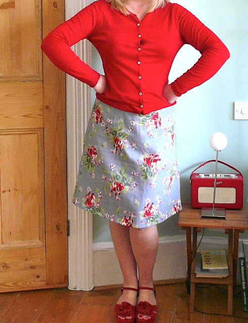 And my floral A-line skirt from a vintage pattern. I refashioned this skirt a couple of years ago (shortened it and removed the waistband), and as it's made from very thin cotton lawn, it's now an ideal holiday skirt.